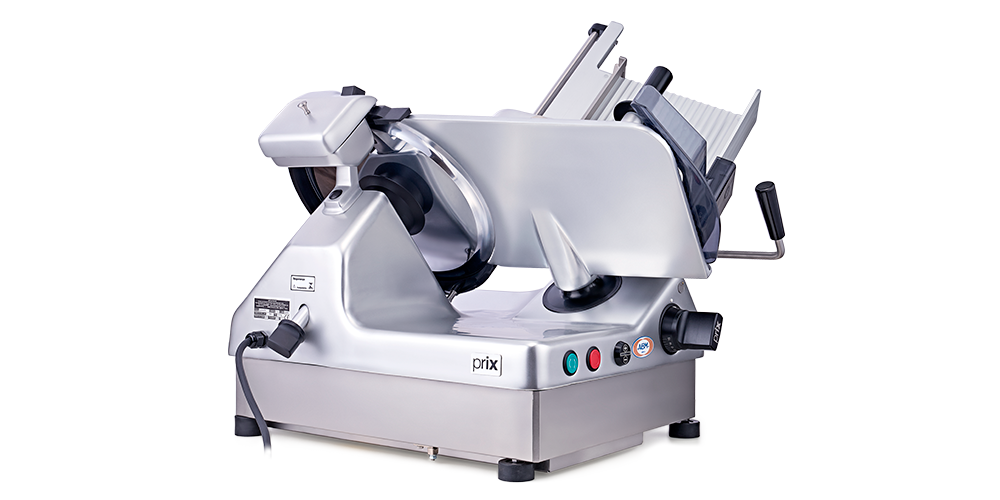 O fatiador de frios Prix Supremo 350A tem movimento de corte automático, que possibilita o fracionamento da peça enquanto o operador retira as fatias para montagem das bandejas para exposição.